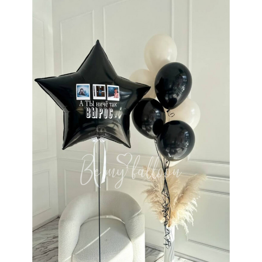 Шар из фольги звезда 36д + надпись + фото - 1 шт.