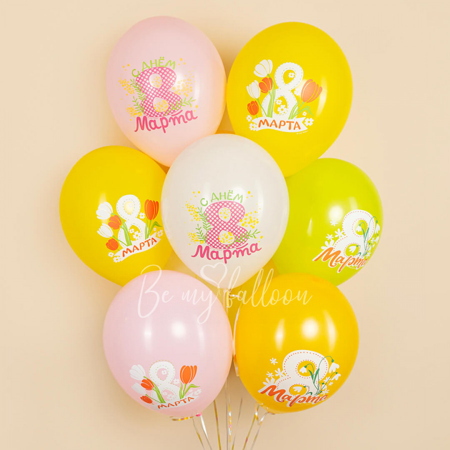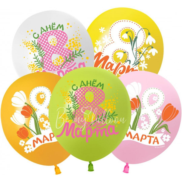 - Шар латексный с рисунком "8 марта, Весенние цветы!", Ассорти