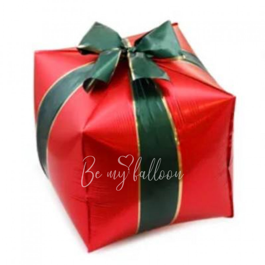 - Шар из фольги "Новогодний подарок" красный с зеленой лентой 36 см